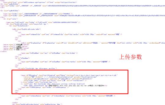 查看網(wǎng)頁源碼,有點復雜,刪改了幾個可能影響上傳的參數(shù),還是不能點擊瀏覽,上傳文件