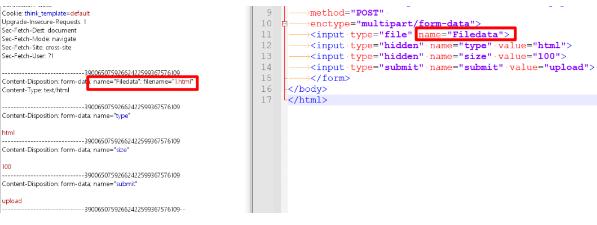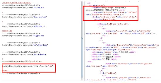除了 type="file" 需要加一個 filename="XXX", 其他的都一一對應(yīng)。不過參數(shù)還是太多了,還是先嘗試一下抓包