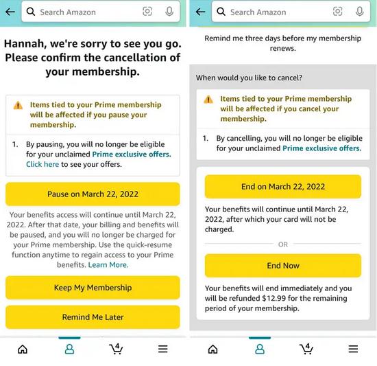 泄露的內(nèi)部文檔顯示,亞馬遜實施被稱作“Iliad”的項目,為用戶取消 Prime 會員設(shè)置障礙。在取消會員前,Iliad 會向用戶顯示多個問題和選項,旨在減少 Prime 會員流失。一份文檔顯示,由于只有較少的用戶能“走完”取消流程,2017 年取消 Prime 會員的用戶減少 14%。