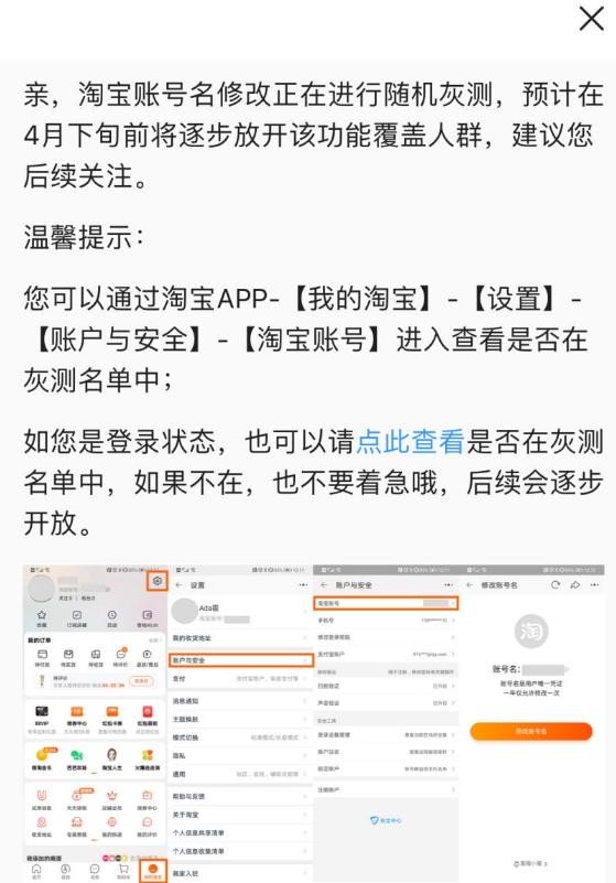本月早些時(shí)候,IT之家報(bào)道了淘寶開始內(nèi)測修改會(huì)員名?,F(xiàn)在,根據(jù)淘寶客服小蜜的最新消息,該功能將在 4 月下旬前向更多人開放。