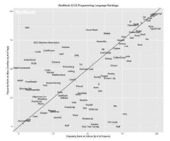 知名軟件行業(yè)分析公司 RedMonk 發(fā)布了 2022 年 1 月(第一季度)編程語言排行榜。