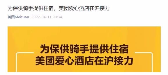 美團今日凌晨發(fā)布公告,為上海保供騎手提供住宿,并給予抗疫補貼。