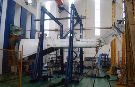 據(jù)介紹,該試驗旨在考核 AC313A 直升機過渡段和尾段以及用于安裝尾減速器的飛機結構在飛行載荷下的靜強度,驗證 AC313A 直升機過渡段和尾段對《運輸類旋翼航空器適航規(guī)定》相關條款的符合性,只有通過試驗驗證了結構靜強度、剛度、損傷容限、環(huán)境影響因子等結構完整性滿足設計要求,才能確保首飛安全。