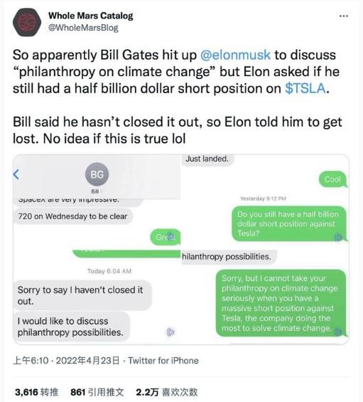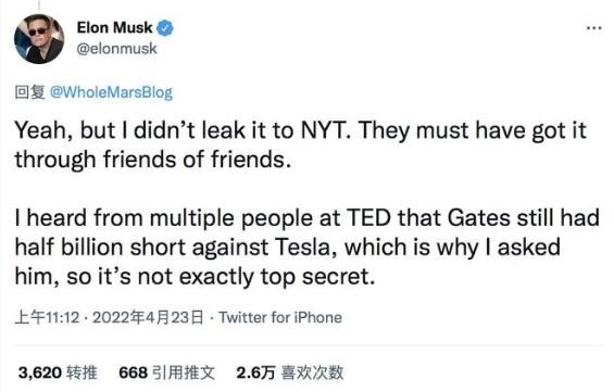 這一次是馬斯克直接在推文中承認(rèn),他曾私下“質(zhì)問”蓋茨是不是做空了特斯拉股票。