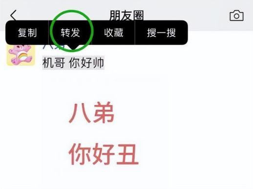 我放著好好的朋友圈評論功能不用,我私下轉(zhuǎn)發(fā)回去給八弟,私聊吐槽?