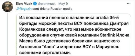 “沒有人想要你,不要再胡鬧了。今天我的國(guó)家正在慶祝一個(gè)偉大的日子——反法西斯主義勝利日。不幸地是,在你向?yàn)蹩颂m納粹提供軍事通信設(shè)備之后,我不能在這個(gè)節(jié)日里祝賀你。想一想,埃隆,你是站在哪一邊的。” 羅戈津用俄語(yǔ)回應(yīng)道。