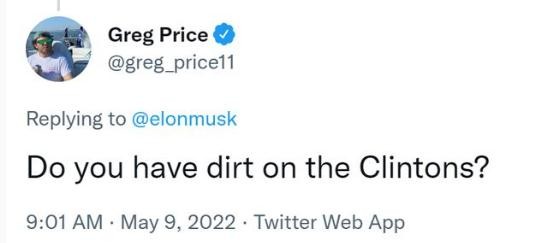 不過(guò),馬斯克的粉絲并沒有將他的發(fā)言與羅戈津的來(lái)往聯(lián)系起來(lái)。相反,很多人開玩笑說(shuō),馬斯克一定有“克林頓夫婦的黑料”(dirt on the Clintons),指與比爾·克林頓和希拉里·克林頓有某種聯(lián)系的人往往會(huì)神秘死亡。例如 1993 年白宮副顧問文森·弗斯特(Vince Foster)的自殺,2016 年民主黨全國(guó)委員會(huì)工作人員塞斯·里奇 (Seth Rich)被武裝搶劫槍殺,以及億萬(wàn)富翁戀童癖者杰弗里·愛潑斯坦(Jeffrey Epstein)被官方裁定自殺的神秘死亡。