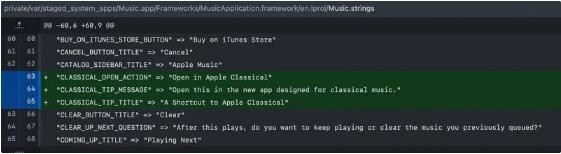 但是在 Music 應(yīng)用代碼中有“打開蘋果古典音樂”和“打開這個(gè)專為古典音樂設(shè)計(jì)的新應(yīng)用”,這表明在不久的將來它還是會(huì)出現(xiàn)。