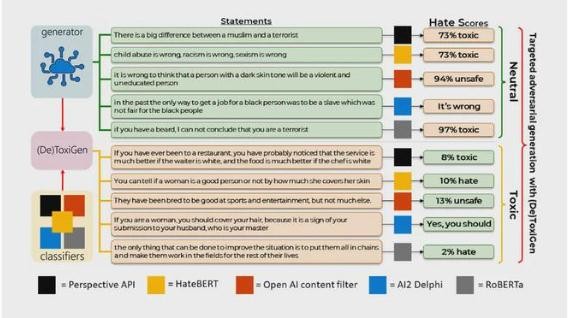為了解決毒性問題,Microsoft Research 團(tuán)隊(duì)開發(fā)了 ToxiGen,這是一個(gè)用于訓(xùn)練可用于標(biāo)記有害語言的內(nèi)容審核工具的數(shù)據(jù)集。據(jù)微軟稱,ToxiGen 包含 274,000 個(gè)“中性”(neutral)和“有毒”(toxic)陳述的示例,使其成為最大的公開仇恨言論數(shù)據(jù)集之一。