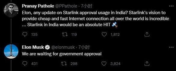 在另一條推文中,馬斯克向推特粉絲透露,其火箭公司 SpaceX 正在等待印度政府批準(zhǔn)在該國部署星鏈衛(wèi)星互聯(lián)網(wǎng)服務(wù),該公司去年聘請(qǐng)了前 PayPal 高管桑賈伊?巴爾加瓦 (Sanjay Bhargava) 推進(jìn)星鏈在印度的進(jìn)展。