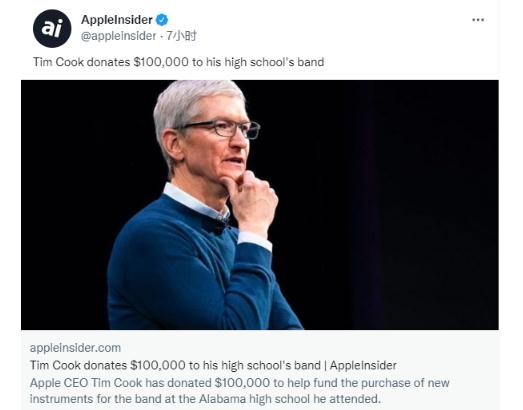 據(jù) Apple Insider 報(bào)道,蘋果公司 CEO 蒂姆?庫(kù)克捐贈(zèng)了 10 萬美元,用于資助他在阿拉巴馬州高中就讀的樂隊(duì)購(gòu)買新樂器。