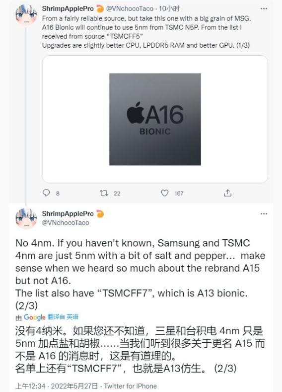 如果是后者(A16 與 A16 Pro)的話,可能普通 A16 芯片與現(xiàn)在基于臺積電第二代 5nm 工藝(N5P)生產(chǎn)的 A15 仿生芯片沒有太大差異。