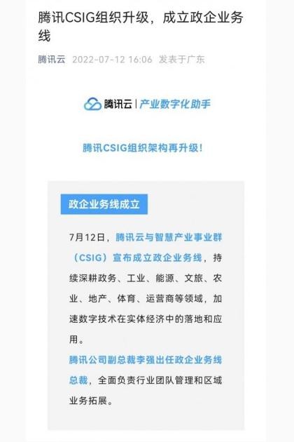 騰訊云與CSIG成立政企業(yè)務(wù)線 加速數(shù)字技術(shù)在實體經(jīng)濟(jì)中的落地和應(yīng)用 11:34:49