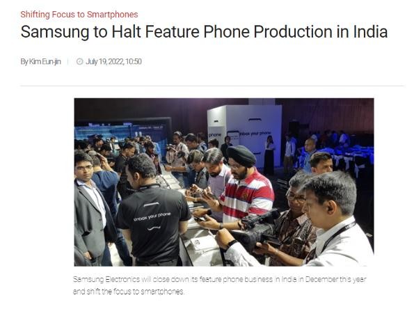 據印度媒體 7 月 18 日報道,三星電子已決定于今年 12 月關閉其在印度的功能手機業(yè)務,并將重點轉向智能手機。