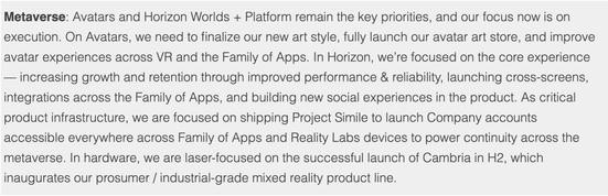 同時(shí),在這份備忘錄中,Meta 還指出了下半年關(guān)鍵業(yè)務(wù)的發(fā)展方向:
