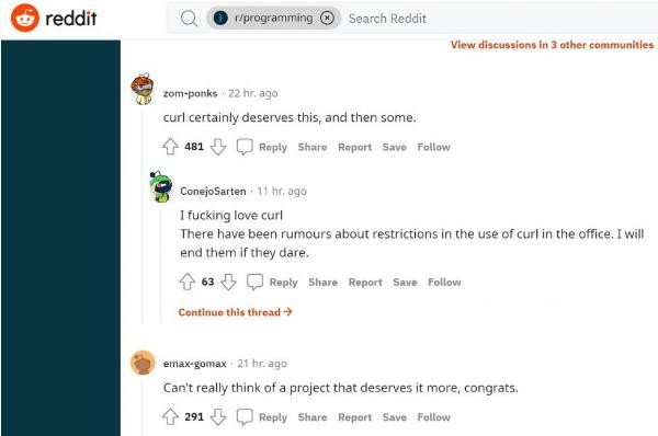 " 真的想不出有什么其他項(xiàng)目更應(yīng)該得到這項(xiàng)榮譽(yù),恭喜 curl。"