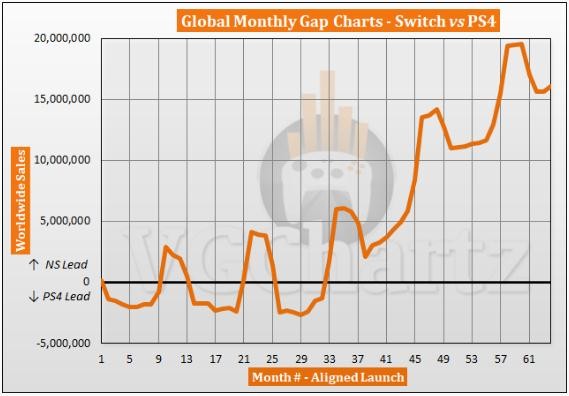 此外,過(guò)去一年中,Switch 銷量比 PS4 高出了 494 萬(wàn)臺(tái),并且在 Switch 發(fā)售的第 33 個(gè)月后,索尼 PS4 單月銷量再也沒(méi)有超過(guò) Switch。因此,按照目前的趨勢(shì),Switch 全球總銷量突破索尼 PS4 紀(jì)錄只是時(shí)間問(wèn)題,甚至有可能達(dá)到 1.55 億臺(tái),超過(guò)索尼 PS2 創(chuàng)造的史上最高銷量。