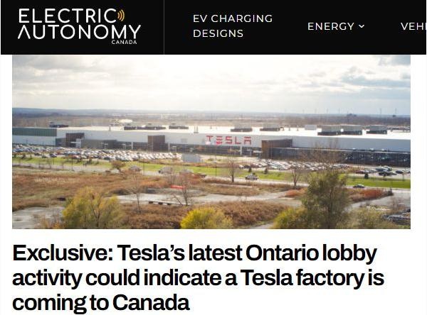 全球電動(dòng)汽車龍頭特斯拉已開(kāi)始游說(shuō)加拿大安大略省政府,有意在該地區(qū)建立一個(gè)新的電動(dòng)汽車工廠。