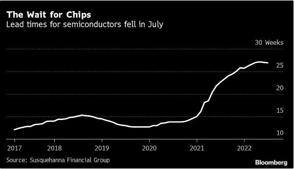 根據(jù) Susquehanna Financial Group 的研究,7 月份的交貨時間(即半導體訂購與交付之間的時間差)平均為 26.9 周,而 6 月份修訂后的交貨時間為 27 周。交貨期已連續(xù)三個月縮短。