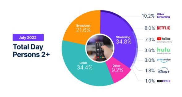 最新數(shù)據(jù)顯示,以奈飛為首的流媒體平臺的收視率在 2022 年 7 月首次超過了有線電視網(wǎng)絡(luò),占據(jù)當(dāng)月美國電視收視的最大份額。數(shù)據(jù)僅包括在電視和聯(lián)網(wǎng)電視上觀看的節(jié)目,移動或網(wǎng)絡(luò)流媒體不在考慮范圍之內(nèi)。這一結(jié)果在意料之內(nèi),因為近年來流媒體使用量持續(xù)攀升,而傳統(tǒng)有線電視在斷線損失的持續(xù)影響中下降。
