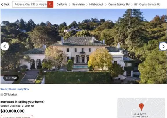 這座灣區(qū)豪宅在去年 12 月以 3000 萬美元的價(jià)格售出,占地 16000 平方英尺,有 7 間臥室、9 間浴室和一個(gè)游泳池。這塊土地是舊金山“最大的地塊之一”,其歷史可以追溯到 1912 年左右。