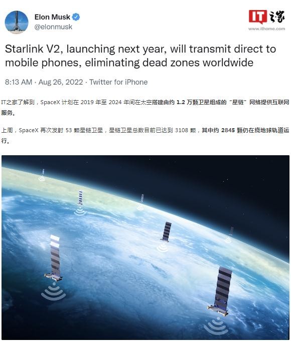 馬斯克通過(guò)Twitter表示 第二代星鏈可與手機(jī)進(jìn)行直接傳輸 10:12:00