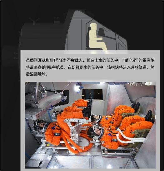 為了更好地了解人類在飛船里的生活狀況,NASA 在飛船里安裝了一個假人。NASA 稱,這個名為穆尼金?坎波斯 (Moonikin Campos) 的假人是以阿波羅 13 號時代的電氣工程師阿圖羅?坎波斯 (Arturo Campus) 的名字命名的,它將配備傳感器,以測量人類在飛行過程中會經(jīng)歷的輻射以及“振動和加速”。