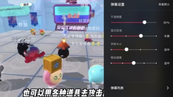 除了文字,彈幕還支持 Emoji 表情符號(hào)。同時(shí),用戶(hù)可以對(duì)彈幕進(jìn)行設(shè)置,調(diào)節(jié)彈幕的不透明度、顯示區(qū)域、字體大小、移動(dòng)速度。在彈幕設(shè)置最下方,用戶(hù)可查看彈幕列表。