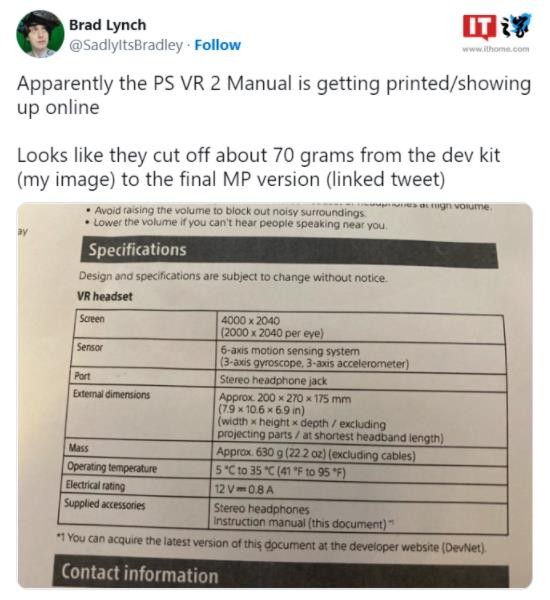 索尼 PlayStation VR2 將于 2023 年初發(fā)售,在推出之前,已經(jīng)有網(wǎng)友曝光了該產(chǎn)品的手冊(cè),其中包括設(shè)備的參數(shù)信息。