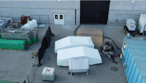 近日,有網(wǎng)友在特斯拉得州超級工廠上方使用無人機(jī)拍到了一些白色設(shè)備,看起來像是用白布蓋住的 Cybertruck 電動皮卡車身。
