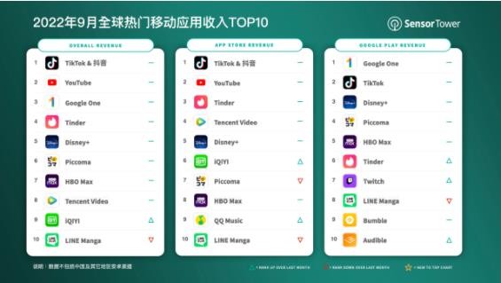 榜單前五名另外三款應(yīng)用為 Google One、Tinder 和 Disney+。