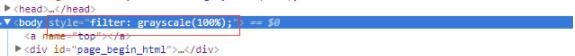 實(shí)現(xiàn)這種效果很簡(jiǎn)單,只需要將css代碼:filter: grayscale(100%);放到body元素里面的style=“”中間就OK了,根本就不需要用到什么網(wǎng)站變灰的插件。如下圖所示: