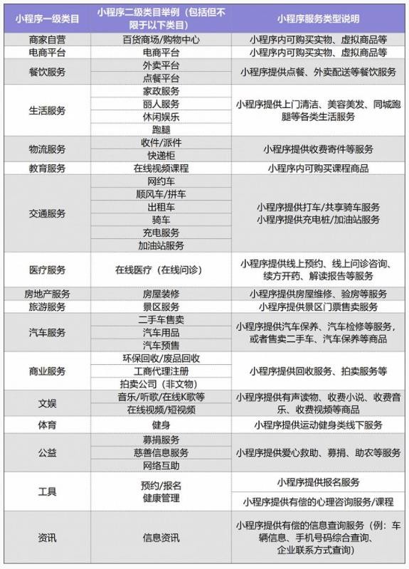 涉及的小程序的類目如下:
