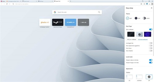 當(dāng)然,你也可以從瀏覽器的設(shè)置頁面找到這些選項:opera://settings/ lucidMode