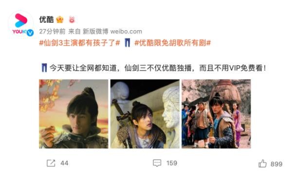 胡歌今天下午官宣生女后,該話題沖上了微博熱搜第一。優(yōu)酷官方“蹭熱度”,宣布連續(xù)三天限免胡歌所有劇。