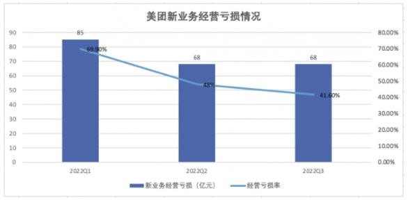 財報顯示,2022 年前三季度,美團(tuán)新業(yè)務(wù)分部經(jīng)營虧損累計達(dá)到 221 億元,拖累公司整體經(jīng)營虧損累計超 50 億元。要改善經(jīng)營狀況,對經(jīng)營效率不佳的業(yè)務(wù)作出調(diào)整勢在必行。美團(tuán)經(jīng)營虧損率從 2022 年第一季度的 69.9% 收窄至第三季度的 41.6%,主要就是由于商品零售業(yè)務(wù)的運(yùn)營效率不斷提高,以及其他新業(yè)務(wù)有效的成本及開支控制。
