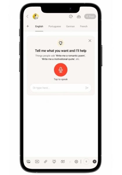 Bidawatka 稱 Koo 是第一個(gè)將聊天機(jī)器人整合到貼文撰寫的平臺(tái)。用戶可以將揭示信息輸入 ChatGPT 工具,也可以用 Koo 語音命令輸入。他還補(bǔ)充說,大約有 20% 的 Koo 用戶喜歡在應(yīng)用內(nèi)撰寫內(nèi)容,ChatGPT 能將比例提高。