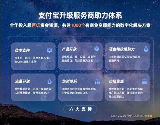 支付寶宣布升級生態(tài)服務(wù)商助力體系 預(yù)計投入超過100億 11:49:45