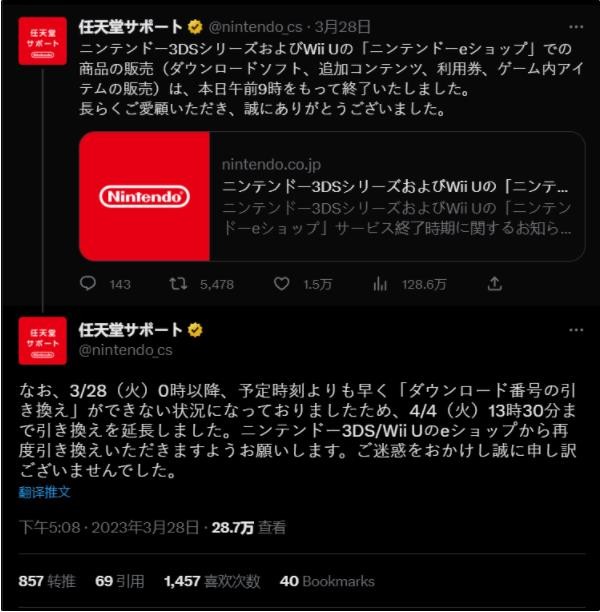 任天堂于 3 月 28 日正式關(guān)閉了 3DS 和 Wii U 游戲機(jī)的線上商店,玩家將無法再購買游戲、新增內(nèi)容和內(nèi)購內(nèi)容。