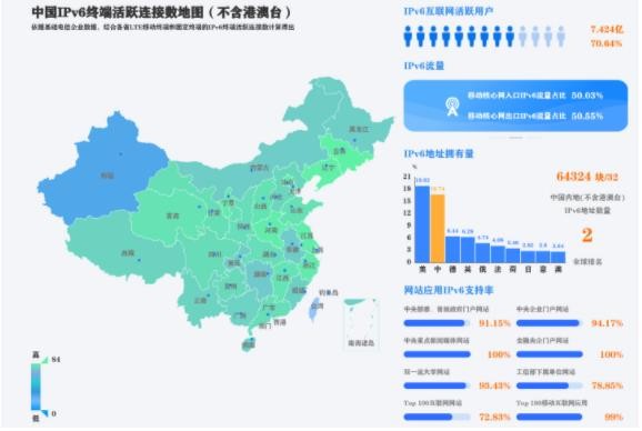統(tǒng)計(jì)平臺(tái)數(shù)據(jù)顯示,截至IT之家發(fā)文,我國(guó) IPv6 互聯(lián)網(wǎng)活躍用戶達(dá) 7.424 億,占比達(dá)到了 70.64%。