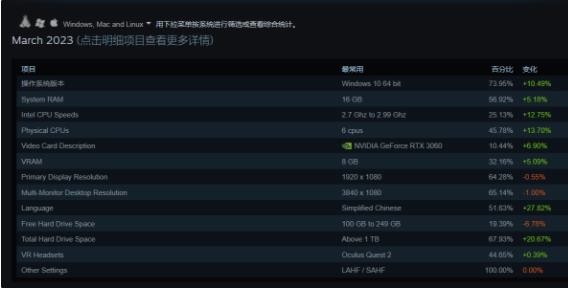 Valve 三月的 Steam 軟硬件調(diào)查報(bào)告現(xiàn)已出爐。這個(gè)月,RTX 3060 顯卡異軍突起,環(huán)比增長(zhǎng) 7%,力壓 GTX 1060 晉升“新一代神卡”。
