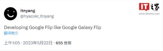 爆料人士 @itnyang 發(fā)推稱,谷歌內部正在討論將翻蓋版 Pixel Flip 折疊屏手機推向市場,但具體名稱還未確定;預計這款機型于 2024 年推出,搭載 Tensor G3 芯片,有望采用三星改進后的 4nm 量產工藝,售價預計低于 Pixel Fold 的 1799 美元(IT 之家備注:當前約 12629 元人民幣)。
