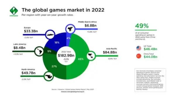 市場調(diào)研公司 Newzoo 發(fā)布的最新報告顯示,全球電子游戲市場在 2022 年萎縮了 5%。