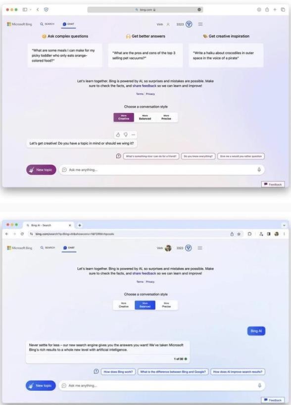 微軟可能會繼續(xù)保持使用 Chrome 和 Safari 瀏覽器訪問必應聊天的用戶數(shù)量較低,以便測試它們的表現(xiàn),然后再決定是否向更廣泛的用戶開放這一功能。IT 之家還注意到,本周早些時候微軟確認將每日聊天輪數(shù)的上限從 200 提高到 300,每次會話的輪數(shù)上限從 20 提高到 30。微軟還將必應圖片創(chuàng)造器在必應聊天中的使用范圍從創(chuàng)意模式擴展到精確模式和平衡模式。除此之外,本周末,必應還慶祝了它的 14 歲生日,其于 2009 年 6 月 3 日正式上線。