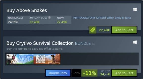 目前已有少部分歐盟地區(qū)的 Steam 頁(yè)面顯示 30 天內(nèi)的游戲最低價(jià),以及當(dāng)前和折扣價(jià)標(biāo)簽,方便買(mǎi)家在使用 Steam 購(gòu)買(mǎi)游戲時(shí)做出更明智的決定。