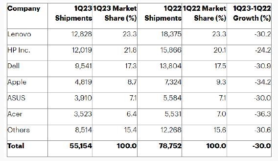 根據(jù)美國科技市場(chǎng)研究公司高德納的報(bào)告,今年第一季度,蘋果在全球個(gè)人電腦市場(chǎng)中占據(jù)了 9.3% 的份額。不過總體上看,全球個(gè)人電腦市場(chǎng)一直在全面萎縮,每年的出貨量以 30% 的速度暴跌。今年一季度,蘋果個(gè)人電腦業(yè)務(wù)獲得了 71.7 億美元的銷售收入,同比也是大幅下跌了 31%。
