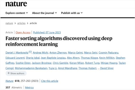 谷歌旗下 AI 實(shí)驗(yàn)室 DeepMind 的工程師團(tuán)隊(duì)在 Nature 官網(wǎng)發(fā)表了一篇論文,稱使用深度強(qiáng)化學(xué)習(xí)發(fā)現(xiàn)了更快的排序算法。