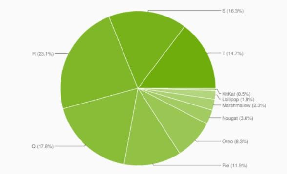 在這個統(tǒng)計數(shù)據(jù)中,目前最古老的系統(tǒng)是 2013 年發(fā)布的 Android KitKat,即便已經(jīng)經(jīng)過 10 年歷史,目前仍然有 0.5% 的用戶在使用。
