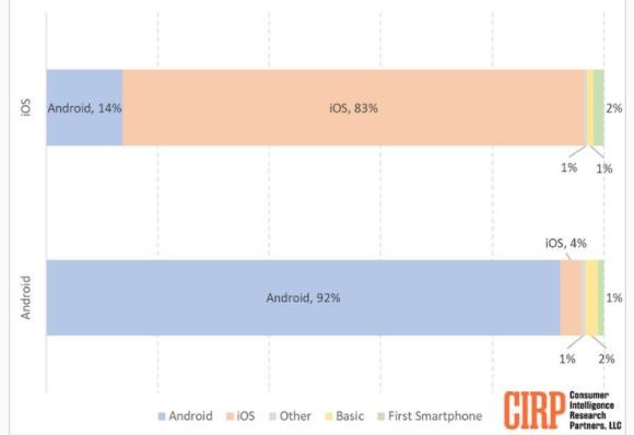 上個月,CIRP 報告指出,美國 Android 用戶轉(zhuǎn)投 iPhone 的比例創(chuàng)下了五年來新高。