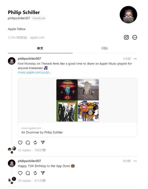 該媒體日前在 Threads 平臺上發(fā)現(xiàn)了名為 PhilSchiller007 的賬號,自稱是蘋果院士菲爾?席勒。